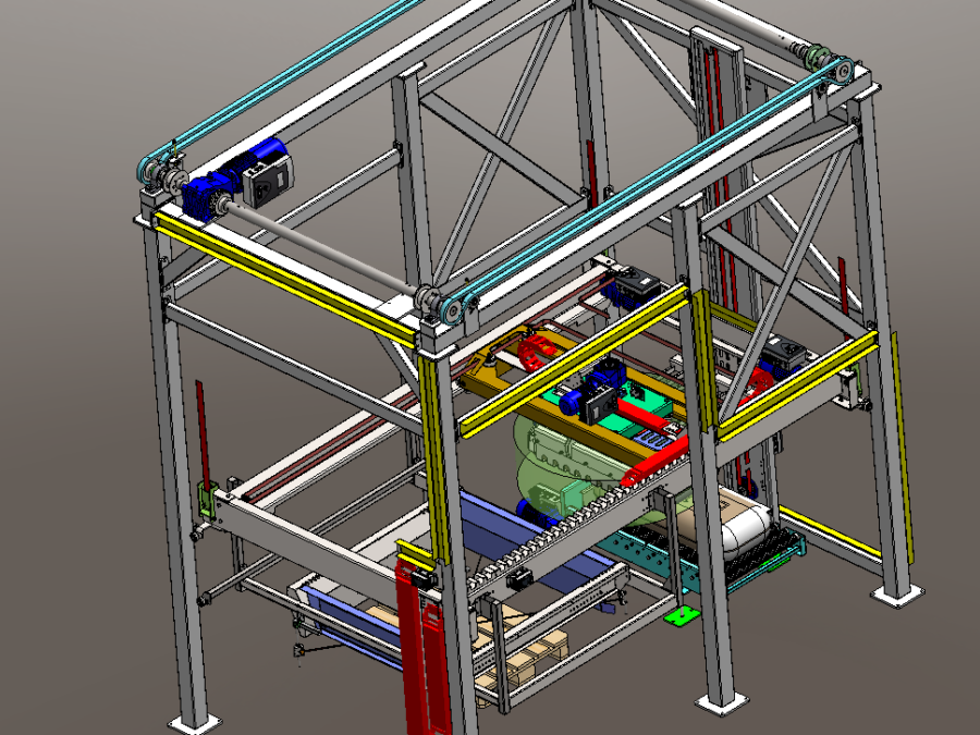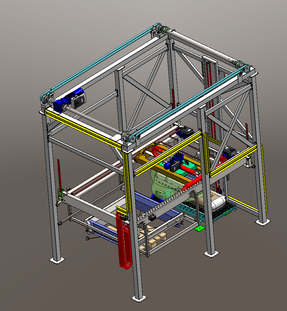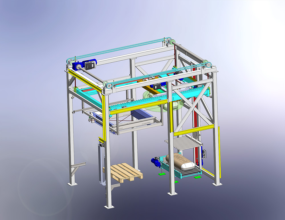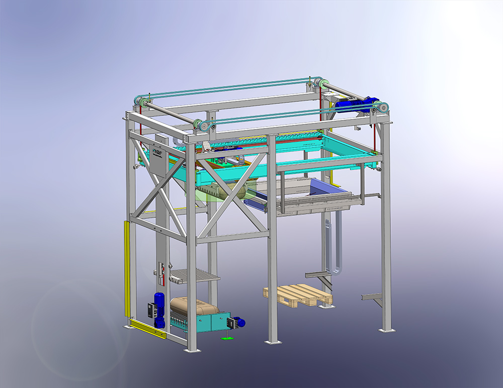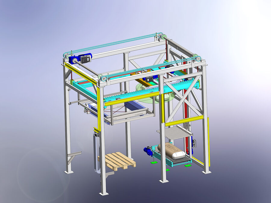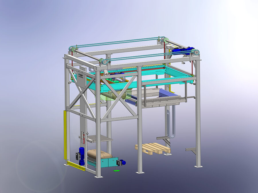 - Portálový zakladač pytlů na paletu.
